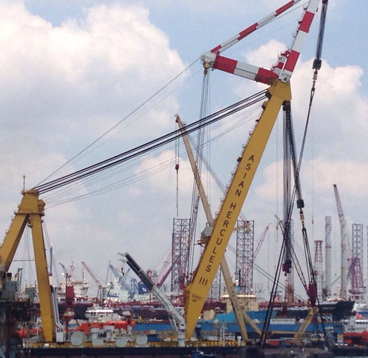 Our fleet of sheerleg Crane capacity ranges from 3200 to 5000 mt. In addition to that we provide Test Lift Barges and Certified Steel Weights for the certification of Marine Heavy Lift Cranes. Our total capacity for Certified Test Weights is up to 5500mt. It is our versatile assets and extensive Marine Heavy Lift experience that gives us the leading edge. Our fleet of Sheerleg Cranes operates worldwide. Most of our activities are in the Asia Pacific region. Our Sheerlegs have till date carried out operations as far as Nova Scotia, Brazil, Europe, Middle East, Sri Lanka, Hong Kong and China. With our vast experience and dedicated team we will provide you solutions for your delicate heavy lift operations.